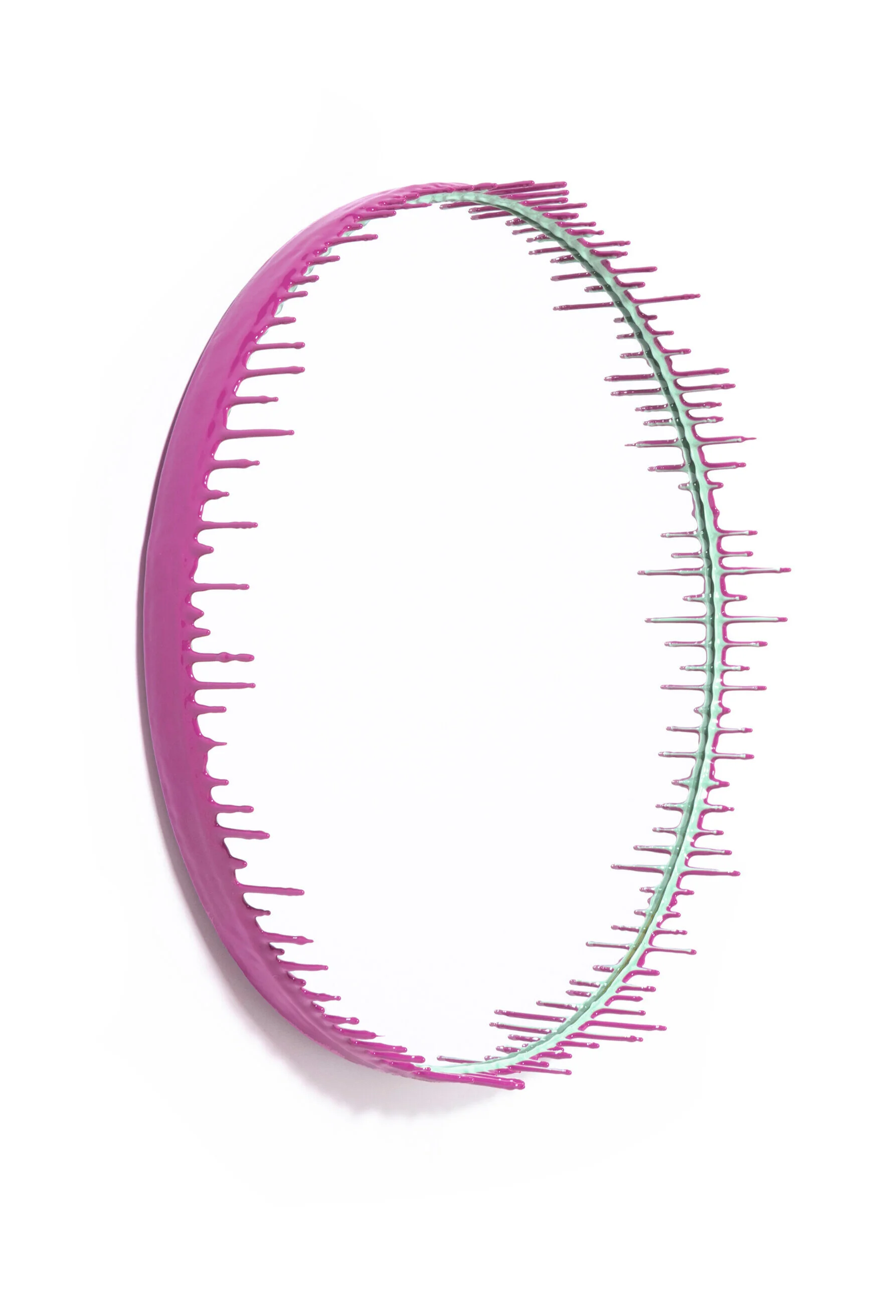 Our Two-Tone Drip Mirrors add bold pop of color to your wall! Each Drip Mirror is hand poured with layers of resin creating a border of our signature stalactite drips. The resin for each piece is hand-pigmented and poured to order. We are happy to create a custom piece to your palette preferences and can color match to any sample.